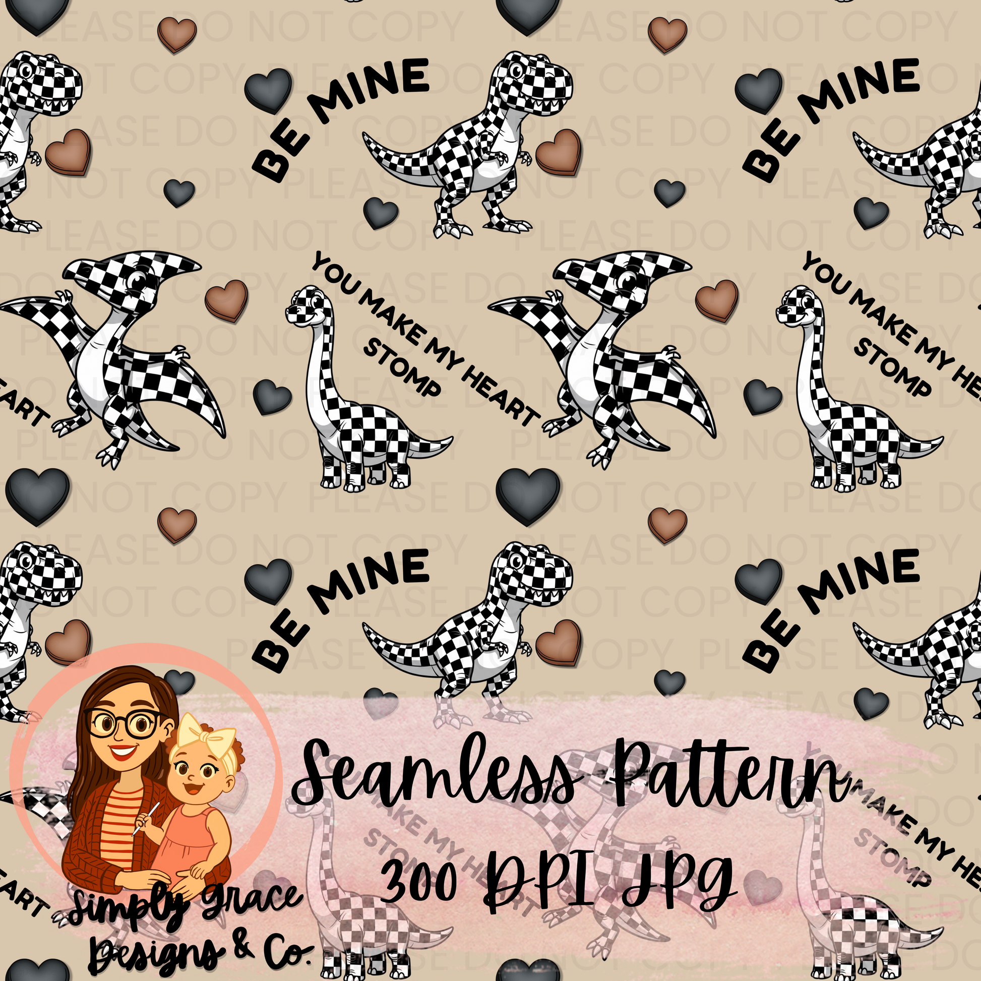 Dino Valentine— GN Seamless Pattern